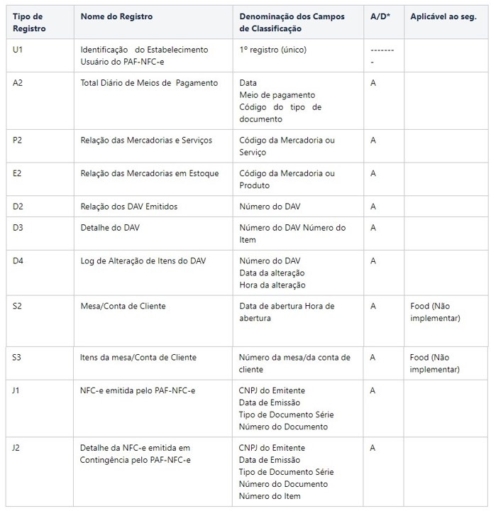 Relatório de registros de PAF NFC-e