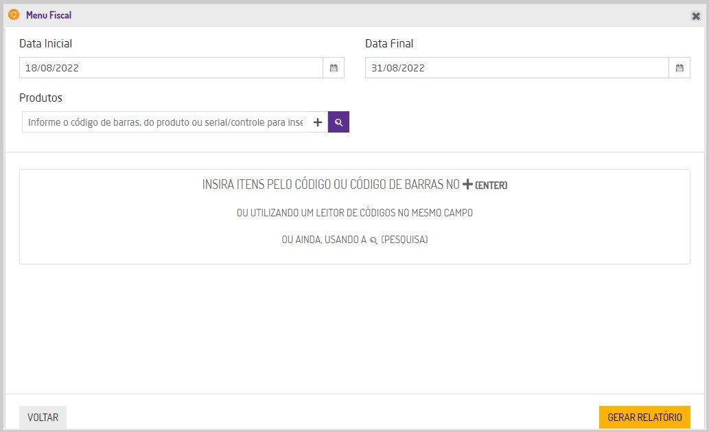 Para gerar o relatório é necessário selecionar os seguintes filtros:
