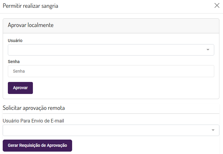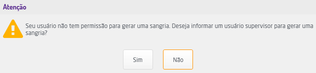Caso o usuário não tenha permissão para lançar uma sangria, será exibido um alerta.