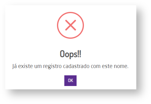 Não será possível cadastrar mais de um setor com o mesmo nome. Quando o usuário tentar, o sistema exibirá uma mensagem informando sobre o caso.