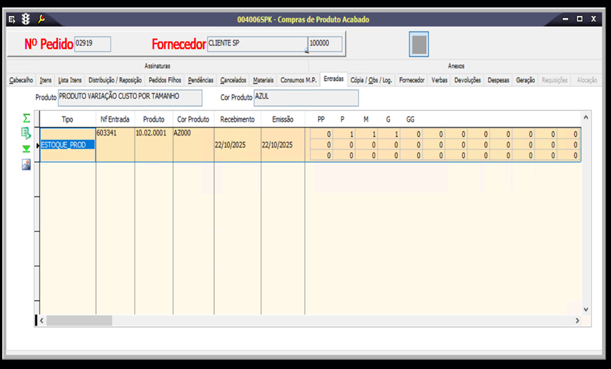 - Tela 005102 – Entrada de NF de Produtos Acabados
