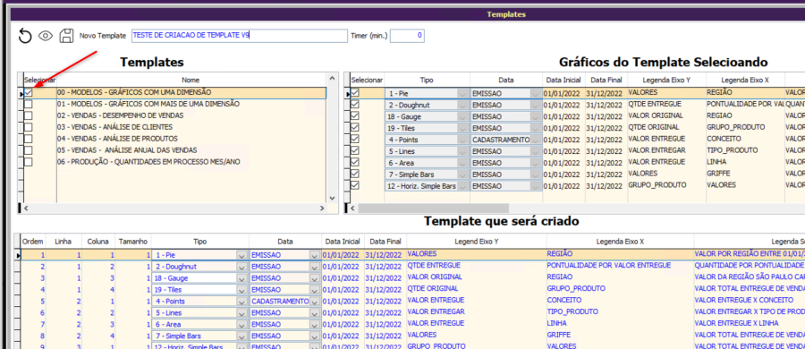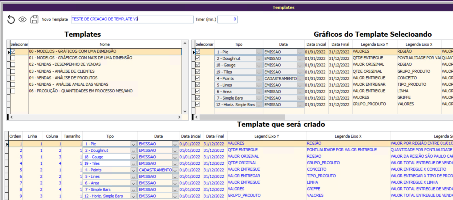 Por exemplo, você pode ter um template de vendas, um template de produção, e assim por diante. Cada linha representa um template, e todos são configuráveis.