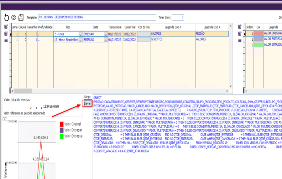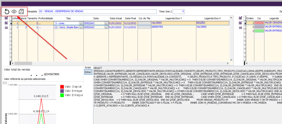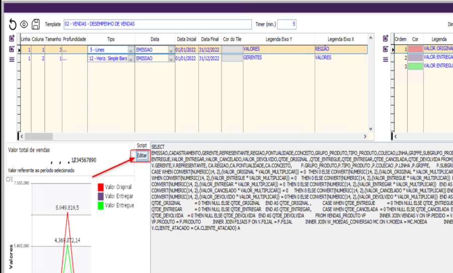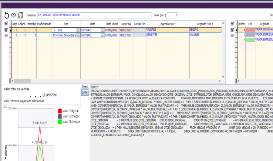 • Dimensões do Gráfico: Definir quais informações e totalizadores serão exibidos.