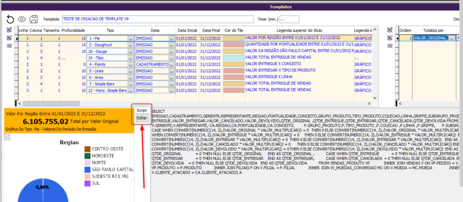 2. Configurar agrupamentos e valores (quantidade ou valor monetário).