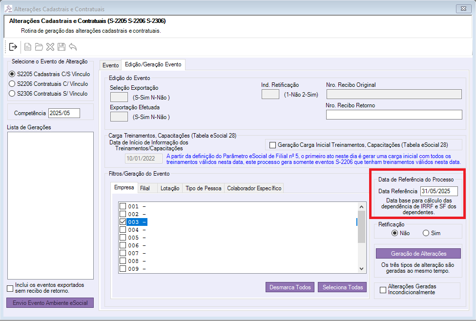 Essa alteração forçará a geração de um novo evento S-2205 pelo sistema