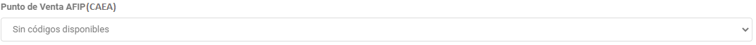 - Punto de venta AFIP (CAEA): Debe ser un punto de venta CAEA existente y ACTIVO, para la compañía, no asignado a otra terminal.