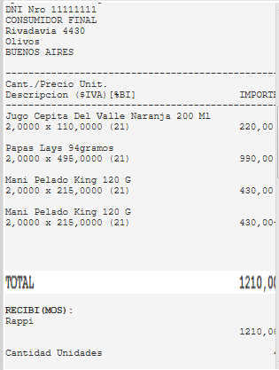 Se emite el comprobante con el número de transacción de Bridge y los datos de la terminal de emisión y la tienda.