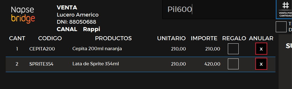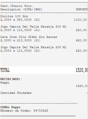 • Canal: Ej: Tienda Digital, Bridge, Rappi, Pedidos Ya, etc.