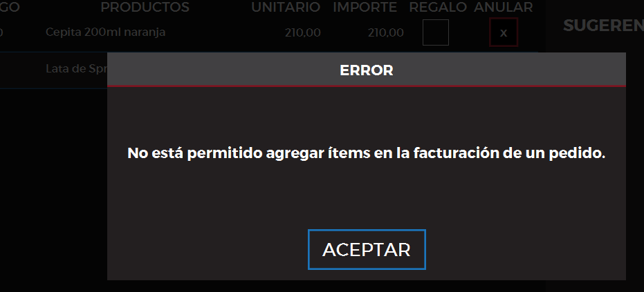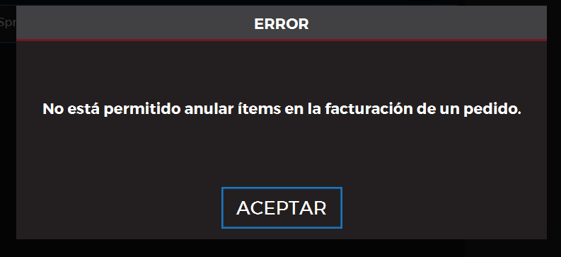 Al hacer doble clic en el Pedido, el operador puede Cancelar el pedido.