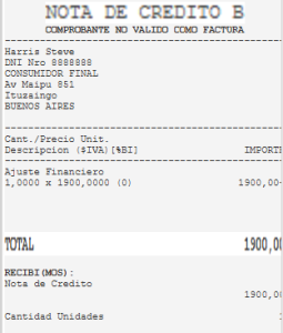 Finalmente se concreta la devolución total del pedido y se emite una Nota de Crédito.
