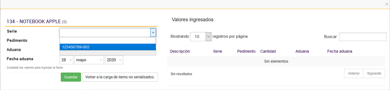 Se simplificó el proceso de carga de productos que requieren número de serie o pedimento en documentos de abastecimiento. Se cambiaron etiquetas poco claras (“Guardar” ahora es “Agregar”) y se mejoró la navegación para volver al listado principal.