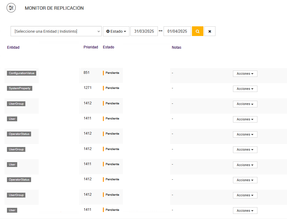 Listado de documentos ASN con estados.