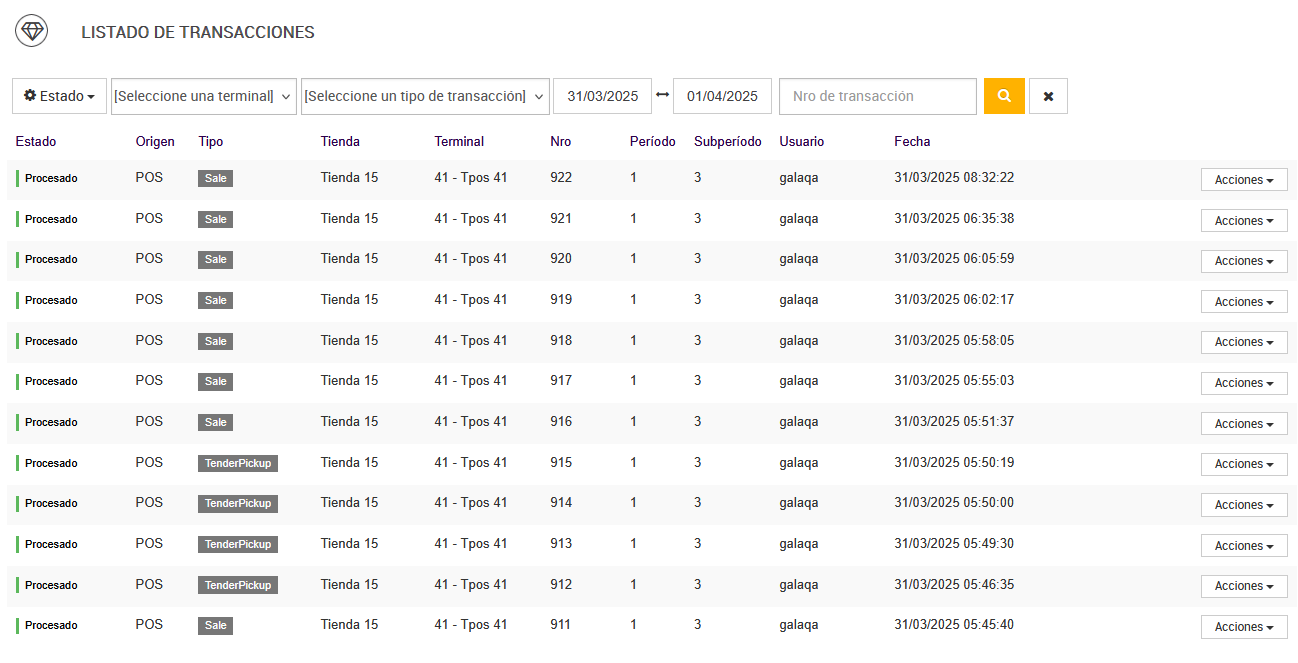 • Tipo de transacción (venta, devolución o cambio)