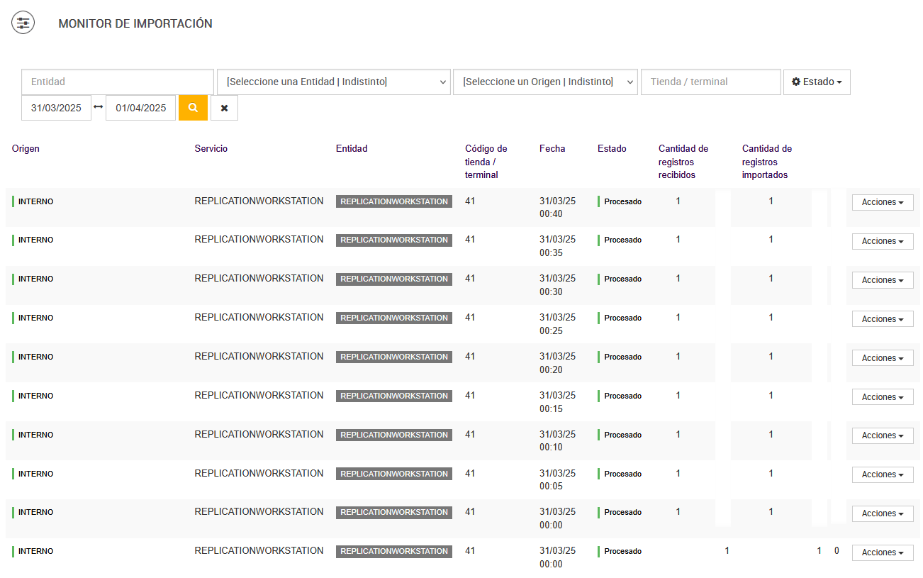 Los archivos generados quedan guardados como histórico y pueden ser auditados ante requerimientos del shopping.