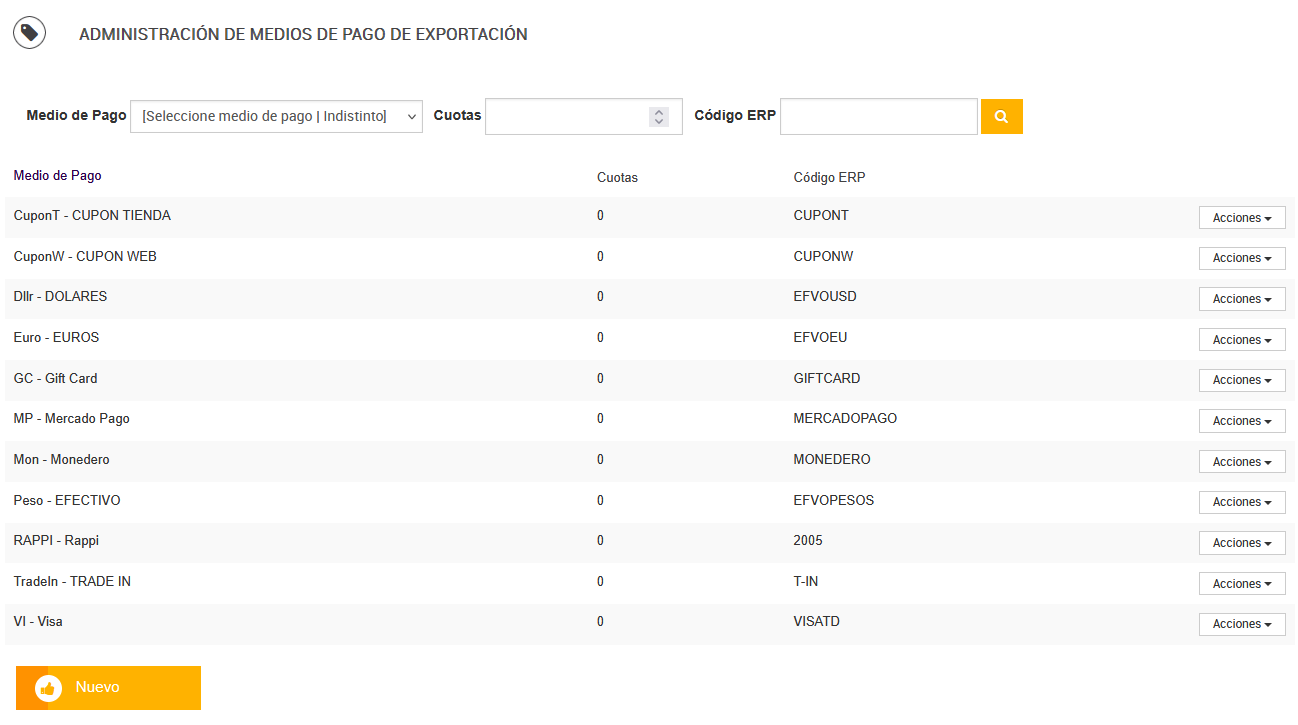 ⚠️ Si una operación tiene varios medios de pago, solo se informa el primero.