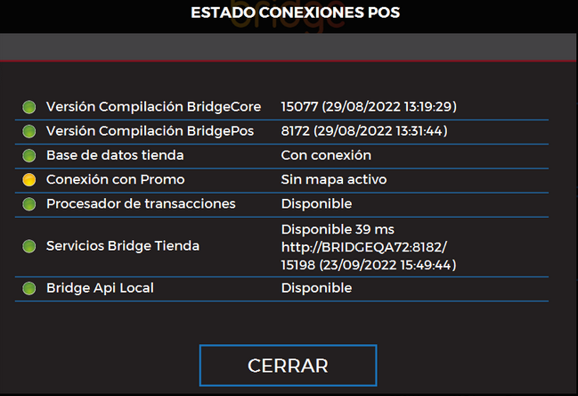 En operaciones que integran el motor de promociones de PROMO junto con el sistema de ventas Bridge POS, resulta clave contar con visibilidad inmediata del estado de conexión entre ambos sistemas.