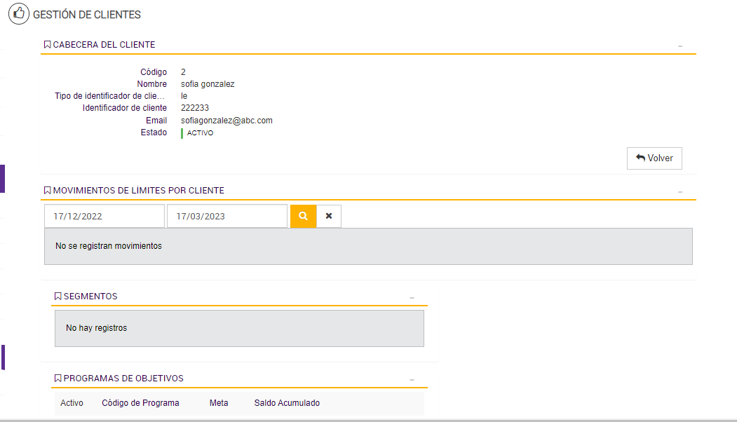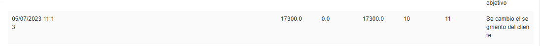 Se observa que el cliente se encuentra ahora en el segmento 9. En el detalle del cliente: