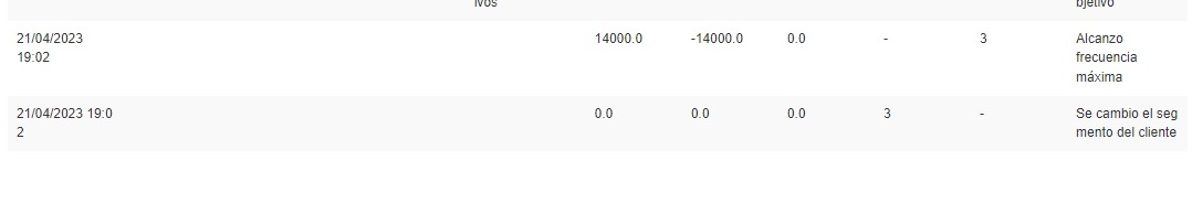 Cuando un cliente no realiza compras durante el período máximo de tolerancia definido en el Programa de Objetivos, el sistema resetea su contador de progreso. A partir de esta lógica, si el cliente no registra movimientos durante ese período, el sistema lo reubica automáticamente en el primer segmento definido en la campaña.