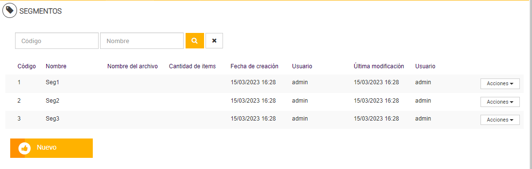 Primeramente se deben crear los segmentos que formarán parte de este programa de objetivos.