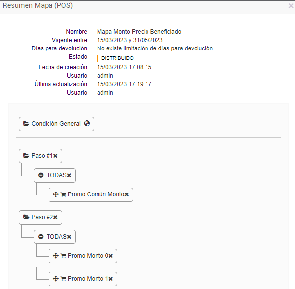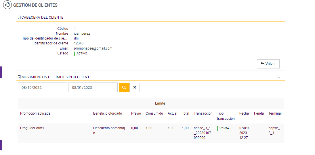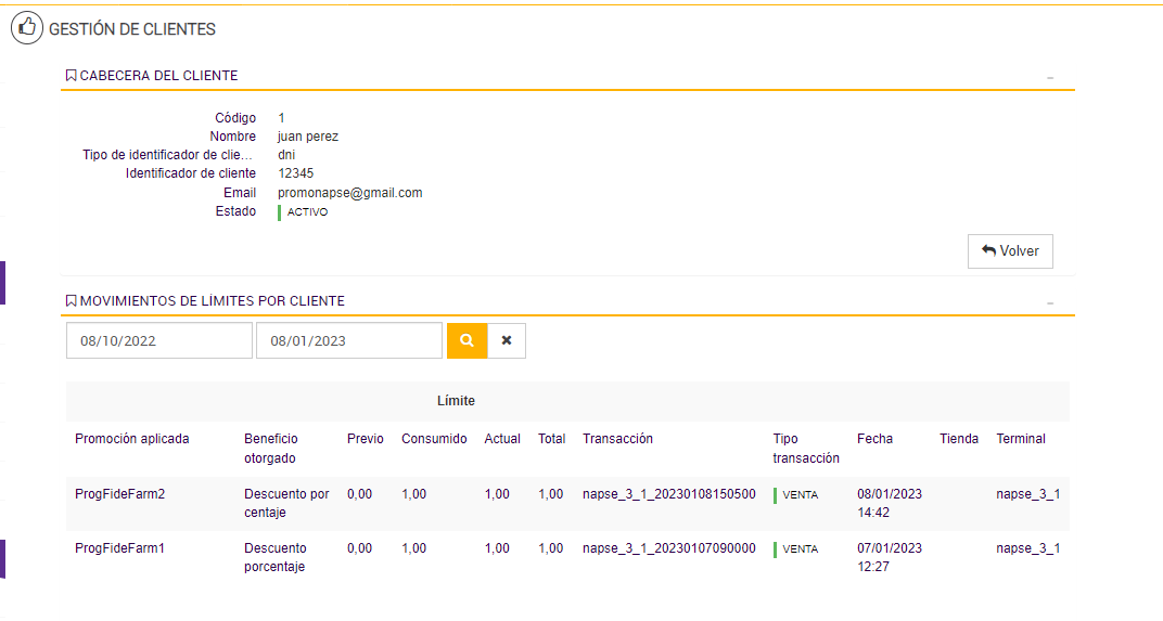 El día 17/03 se realiza otra venta y se observa que se le aplicó al cliente el beneficio de la promoción "Promo Monto 1"