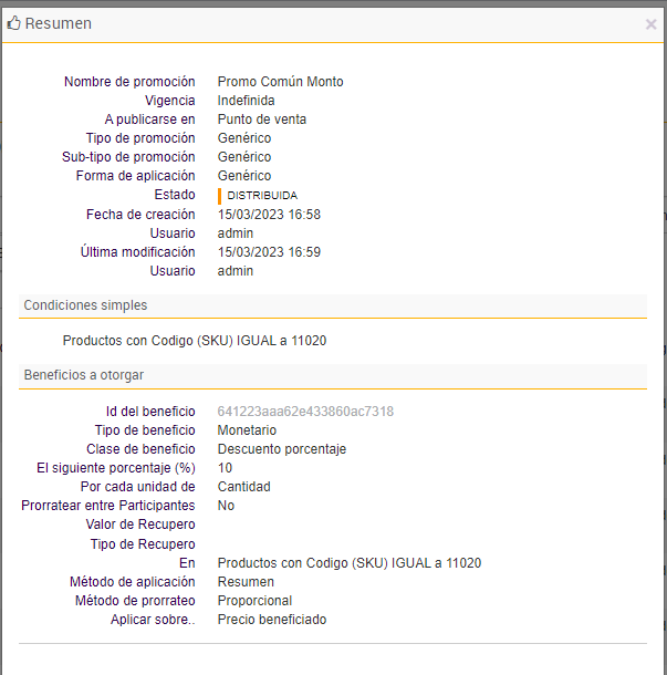 Se observa que la promoción 0 se aplicó sobre el precio beneficiado= 3060.00