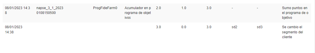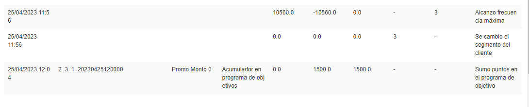 Se ejecuta el Job de Procesos de programas de objetivos; en el Informe Transaccional de Cliente se observa: