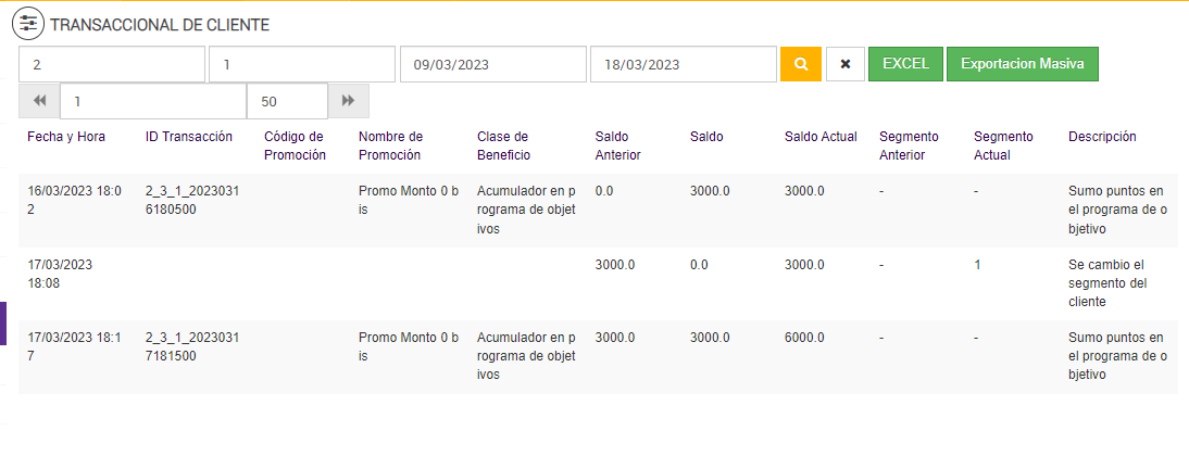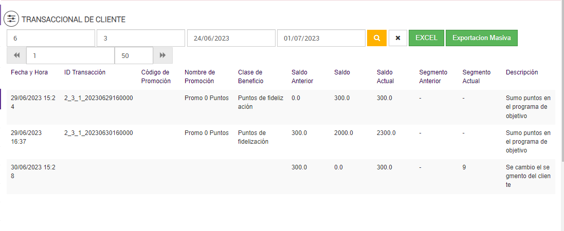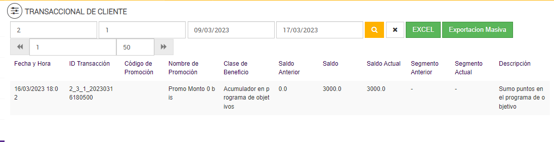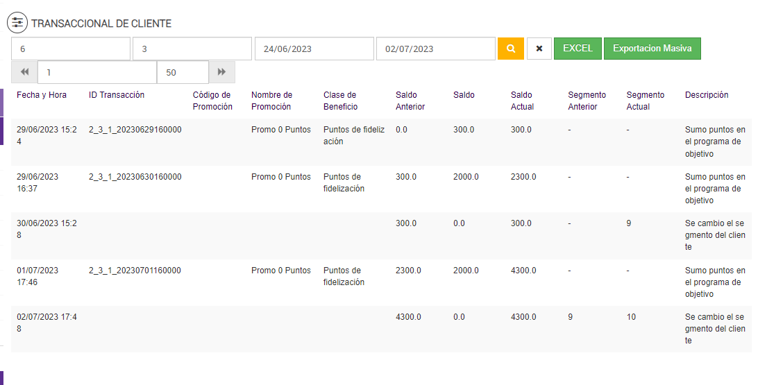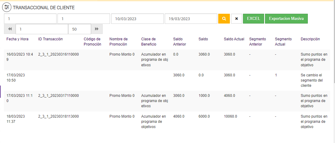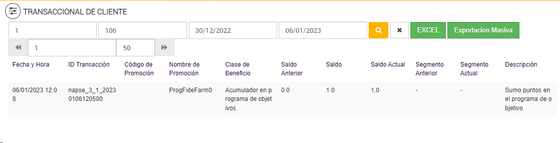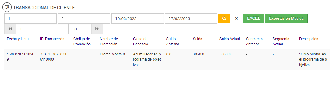Luego de ejecutarse el Job de Programa de Objetivos, en el reporte Transaccional de Cliente: