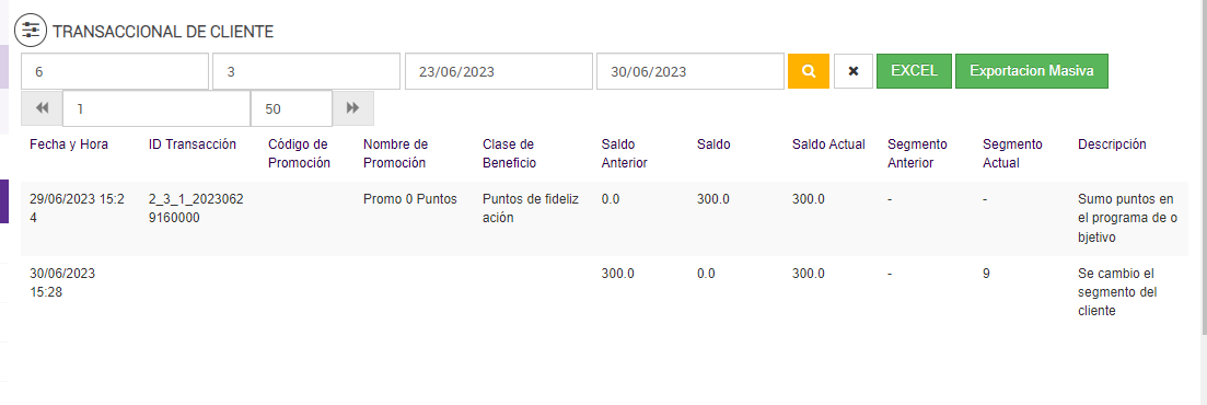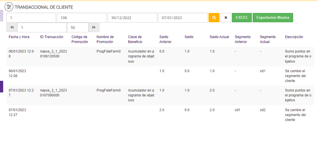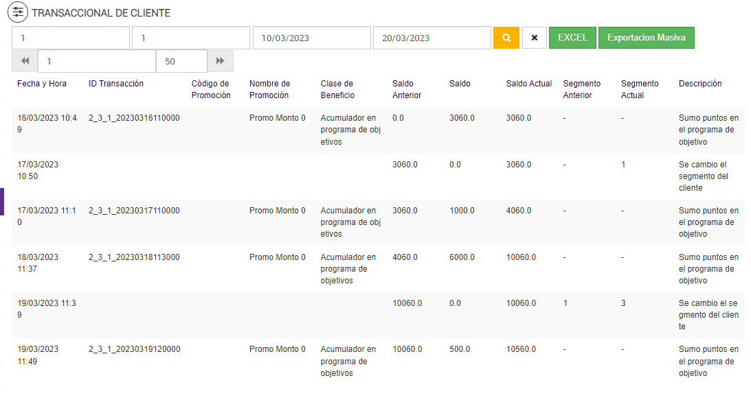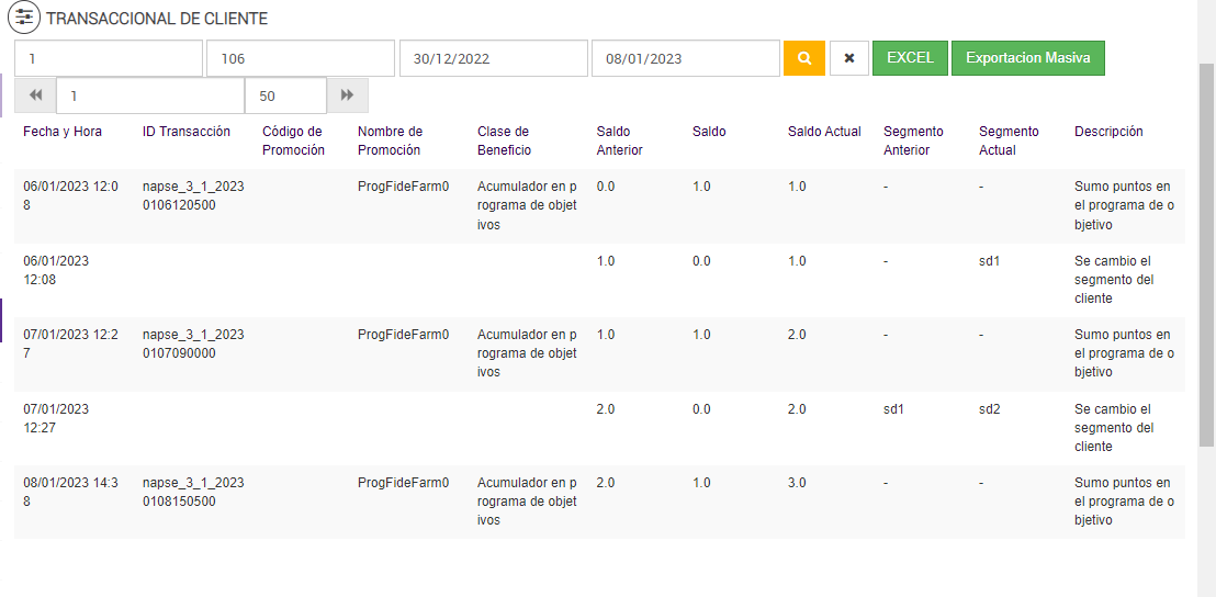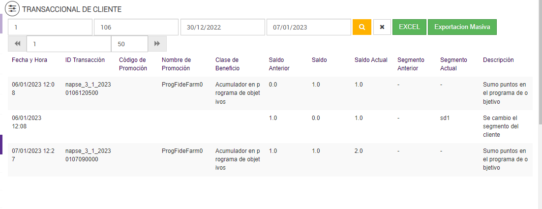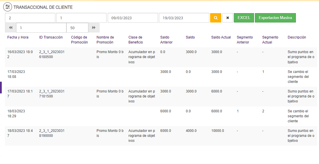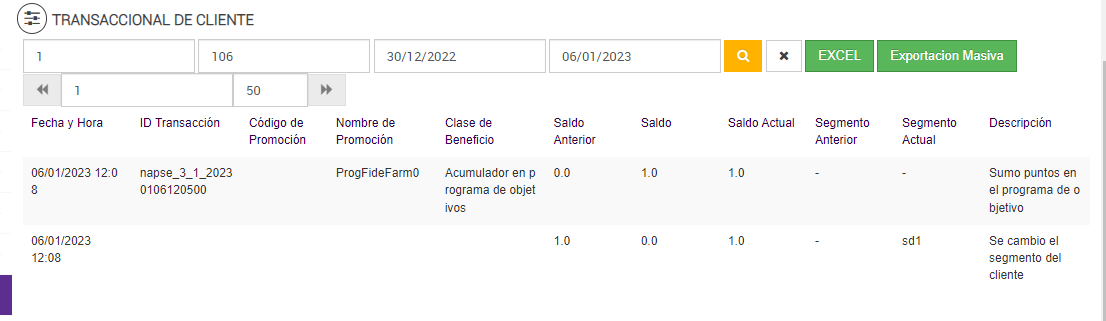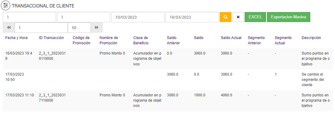 Luego de ejecutar el job de Programa de Objetivos, el reporte transaccional de cliente: