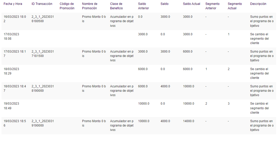 El proceso de evaluación y actualización se ejecuta de forma automática al cierre del período. De esta manera, el sistema garantiza que cada cliente se encuentre siempre en el segmento que le corresponde de acuerdo a sus consumos reales, manteniendo la coherencia y equidad del programa de fidelización.
