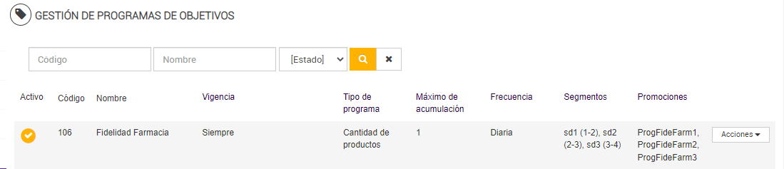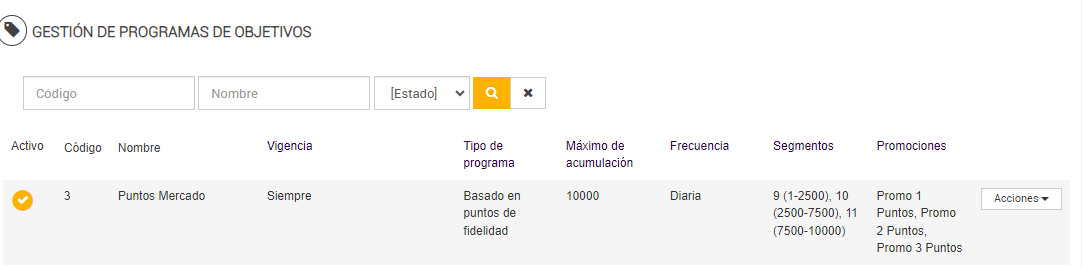 Se detallará la creación y funcionamiento del tipo de programa de objetivos basado en puntos de fidelidad