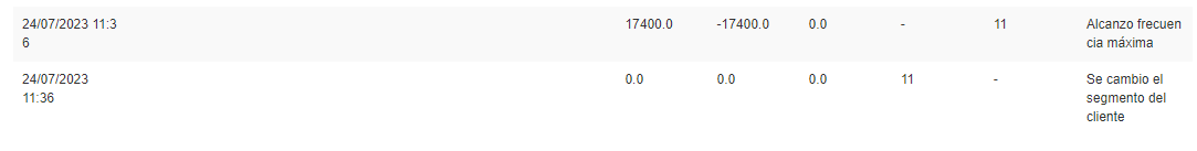 Este comportamiento garantiza que el cliente no quede sin segmento ni beneficios, sino que retome su participación desde el nivel inicial, siempre que la lógica del programa esté correctamente parametrizada con segmentos escalonados.