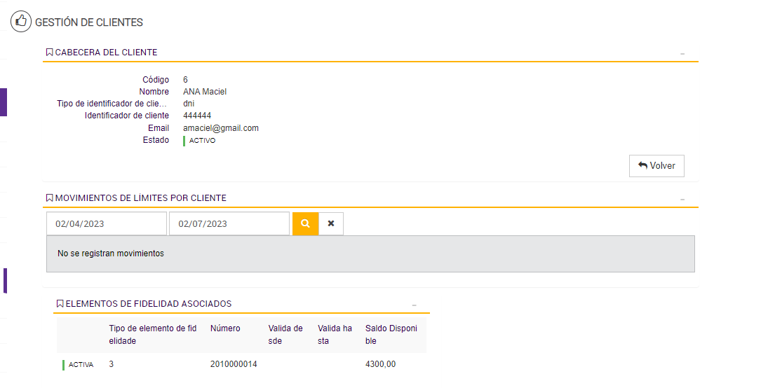 Y en el detalle del cliente:
