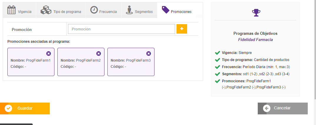 3. Primeramente se crean las promociones que tendrá asociadas el programa: