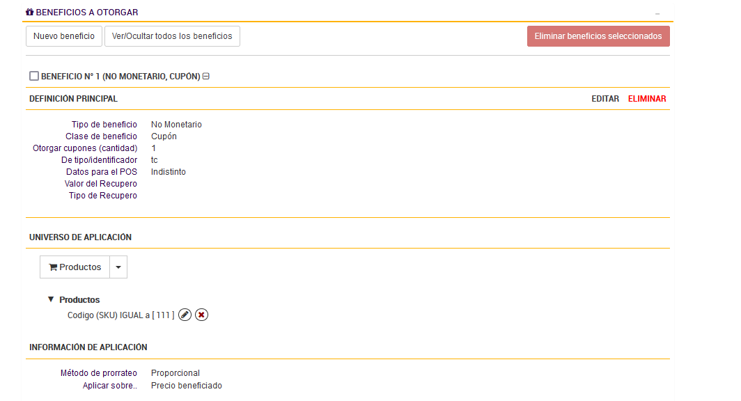 En PROMO se podrán construir promociones por composición de condiciones (combos), promociones definidas por condiciones simples, crear beneficios, otorgar cupones y puntos de fidelidad, pudiendo configurar los parámetros correspondientes a cada promoción según se requiera.