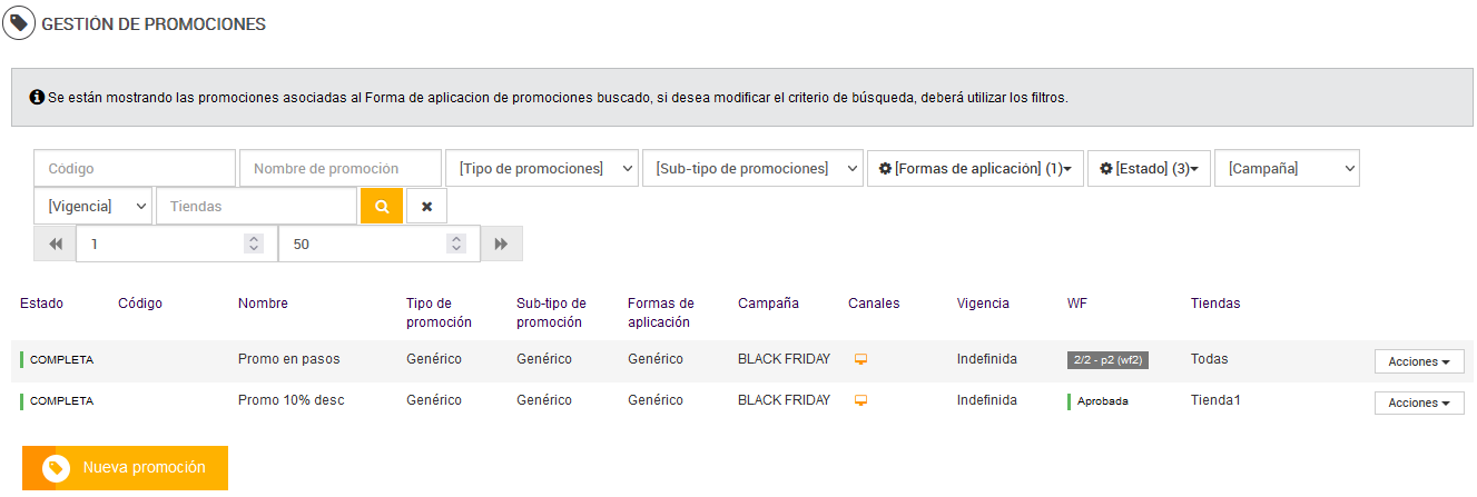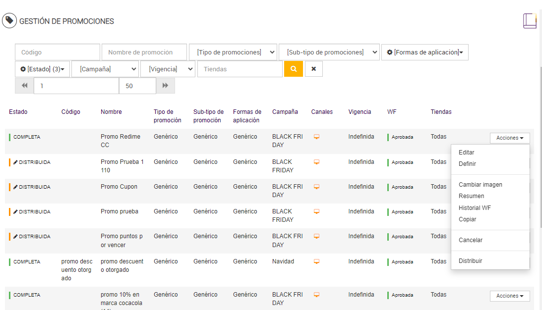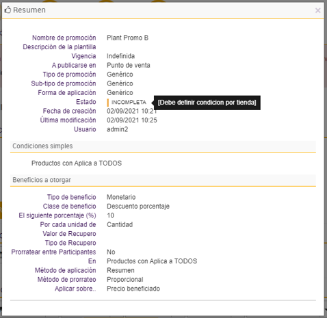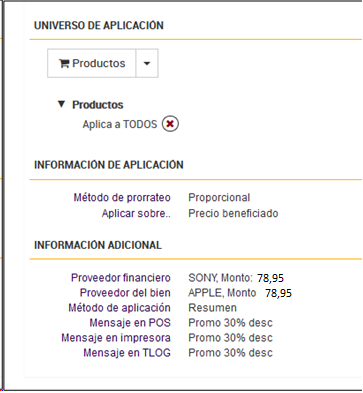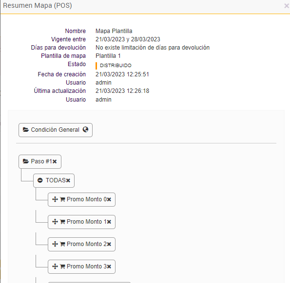 Por medio de la consola de promociones se realiza la definición de los mapas en los cuales se relacionan las promociones vigentes mediante reglas de convivencia y órdenes de aplicación.