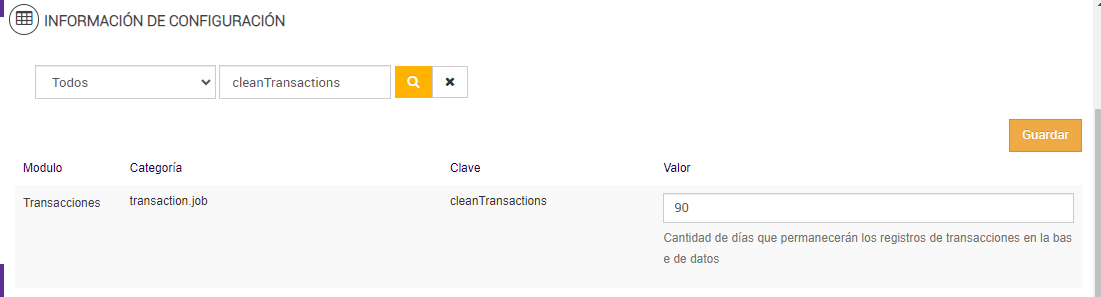 Para que el botón "Transacciones" esté habilitado deben configurarse en Administración/ Información de Configuración los siguientes campos: