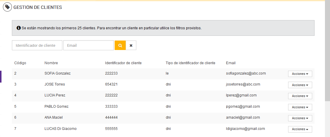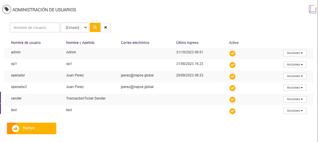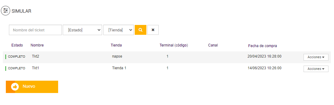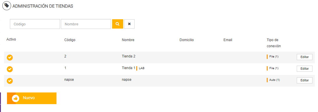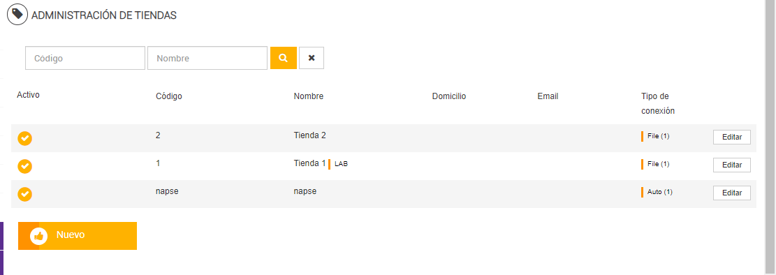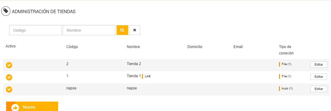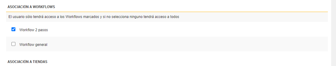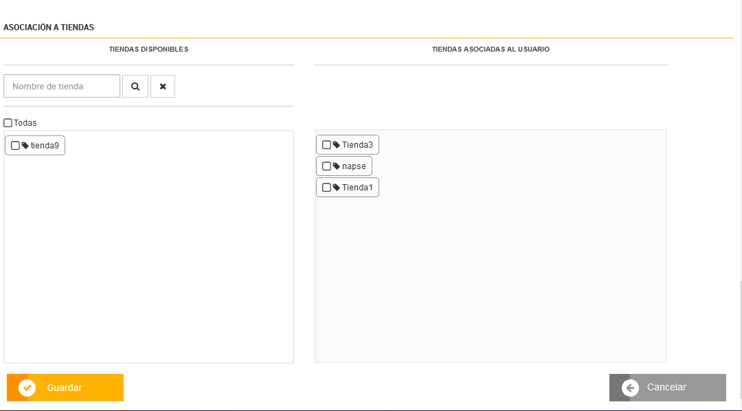 Tiendas: las que tiene vinculadas el usuario. Ej: Tienda1, Tienda2, etc. Las tiendas se separan con coma.
