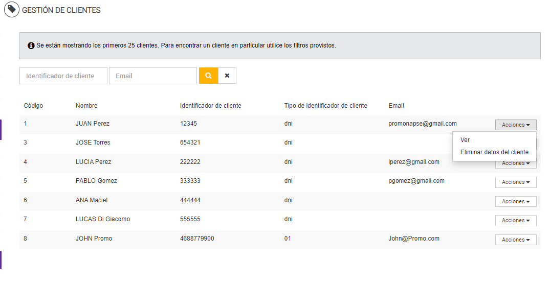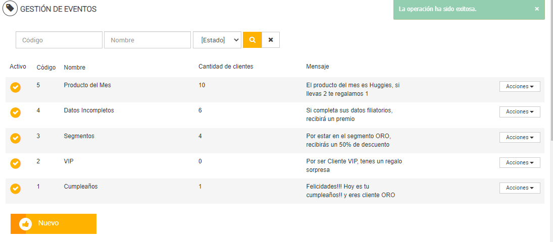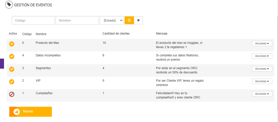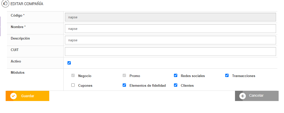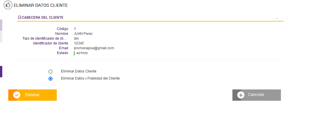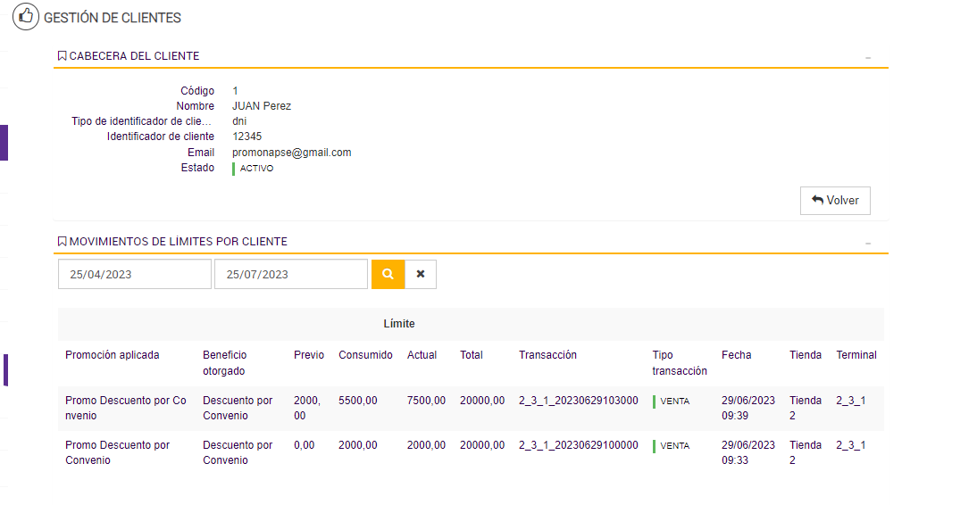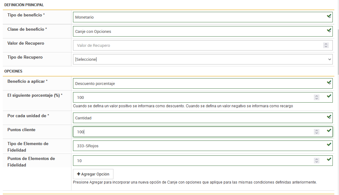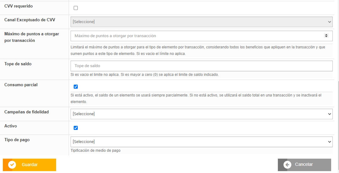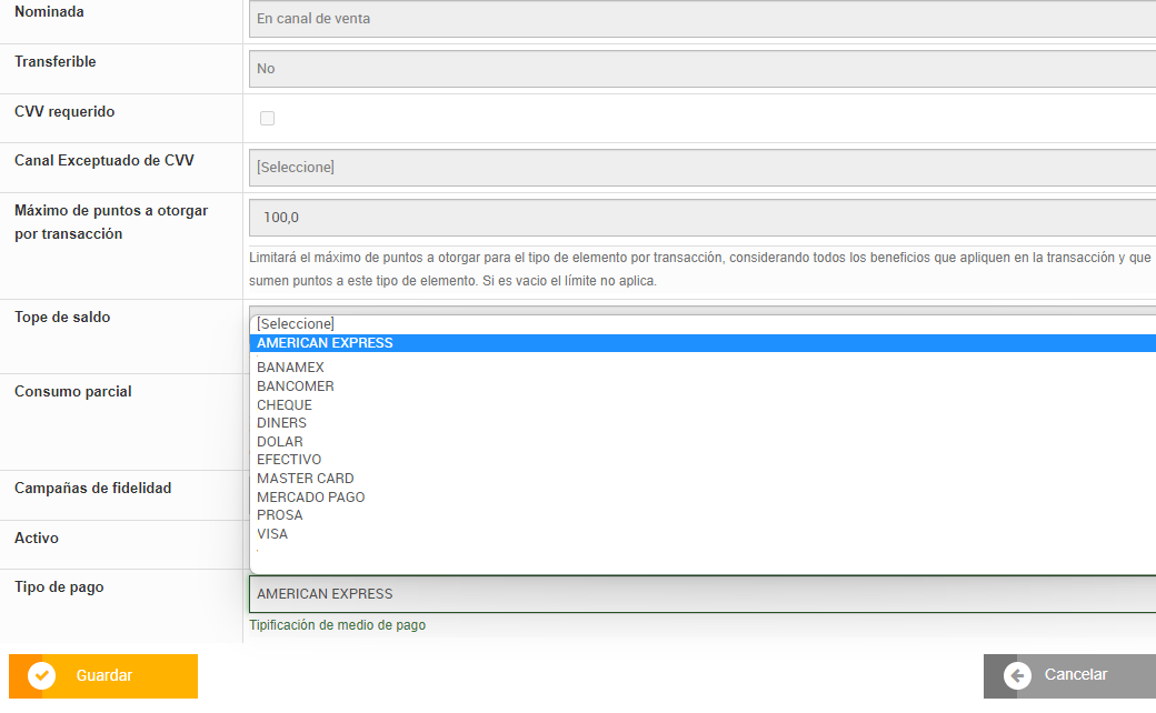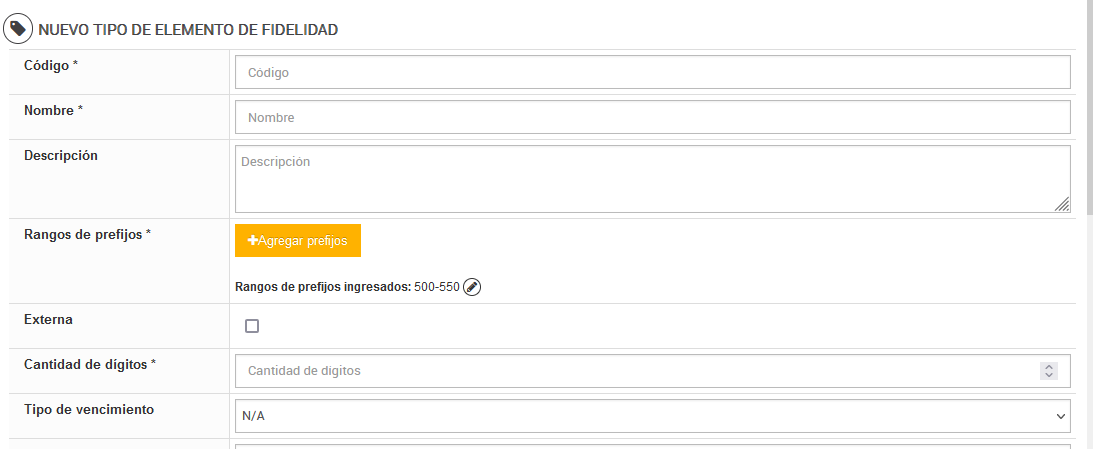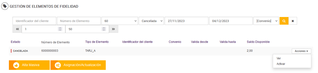 También es posible generar elementos de fidelidad, pudiéndose dar de altas distintos perfiles de elementos de fidelidad como ser por ejemplo, GiftCard, monederos o elementos de fidelidad de puntos, podrá gestionarse el saldo, asociarlas a y permitir su participación en promociones para incrementar o disminuir su saldo según la promoción que se aplique.