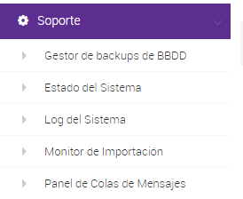 Desde el menú Soporte > Monitor de importación, se accede a la pantalla de administración del monitor de Importaciones.