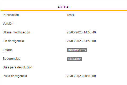 - Ultima actualización: mostrará la fecha y hora de la última actualización