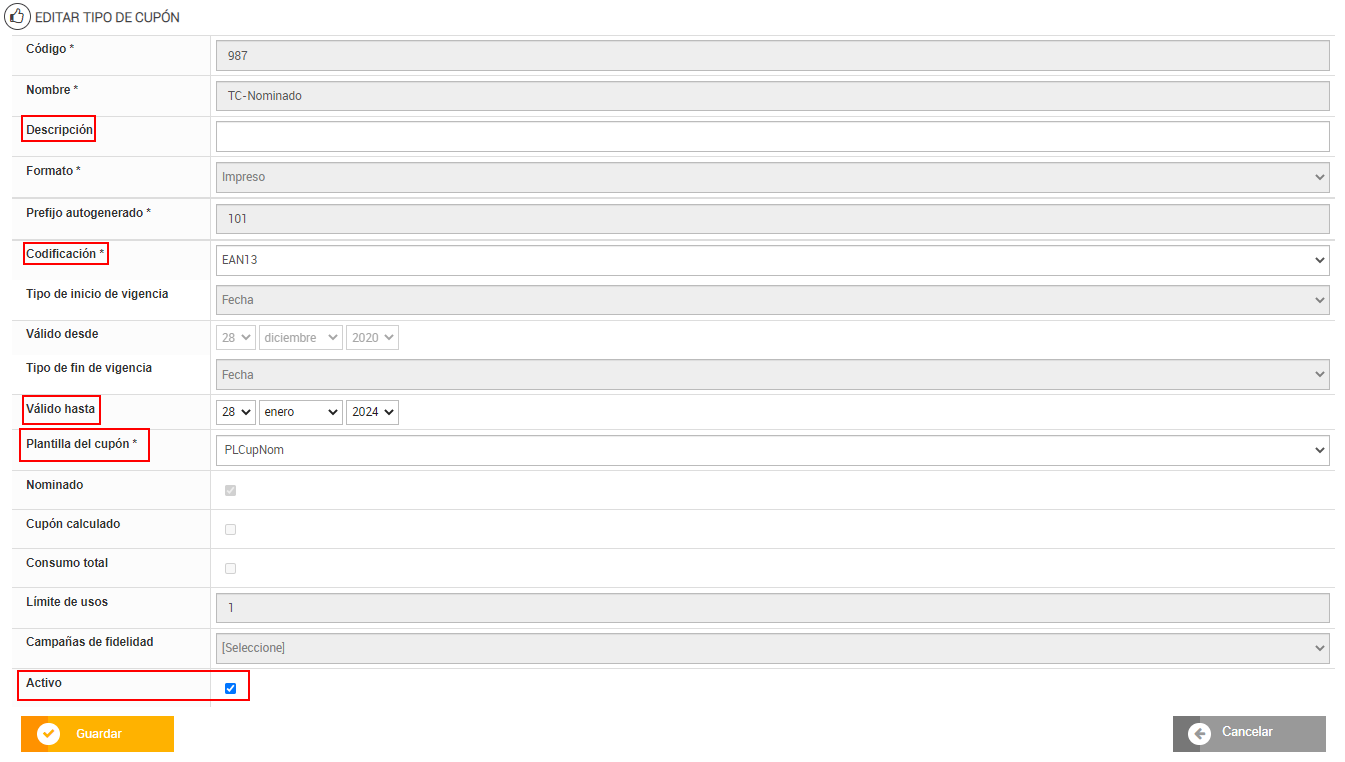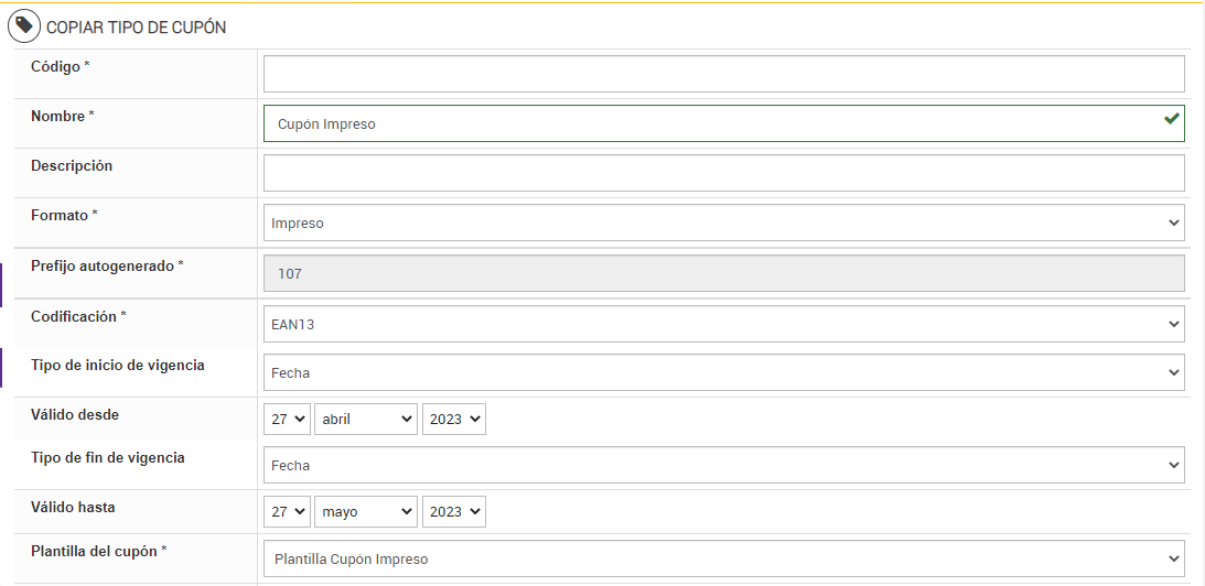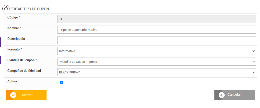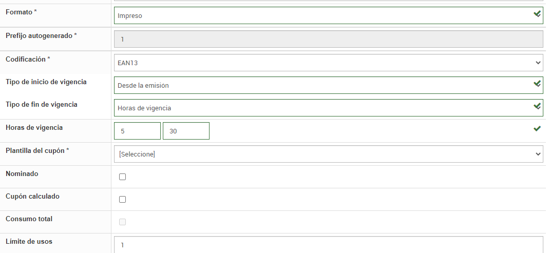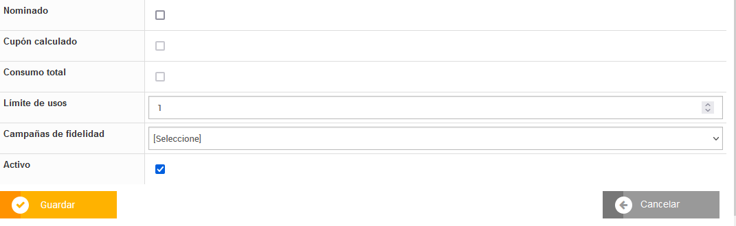 Cuando se deshabilita el acceso al módulo de Cupones para la compañía que se está considerando: