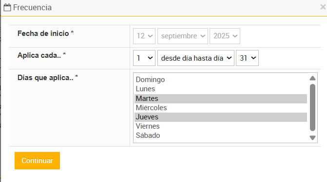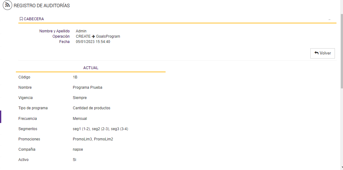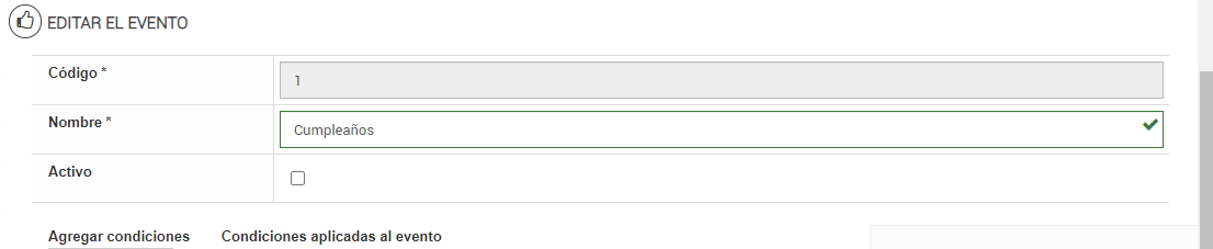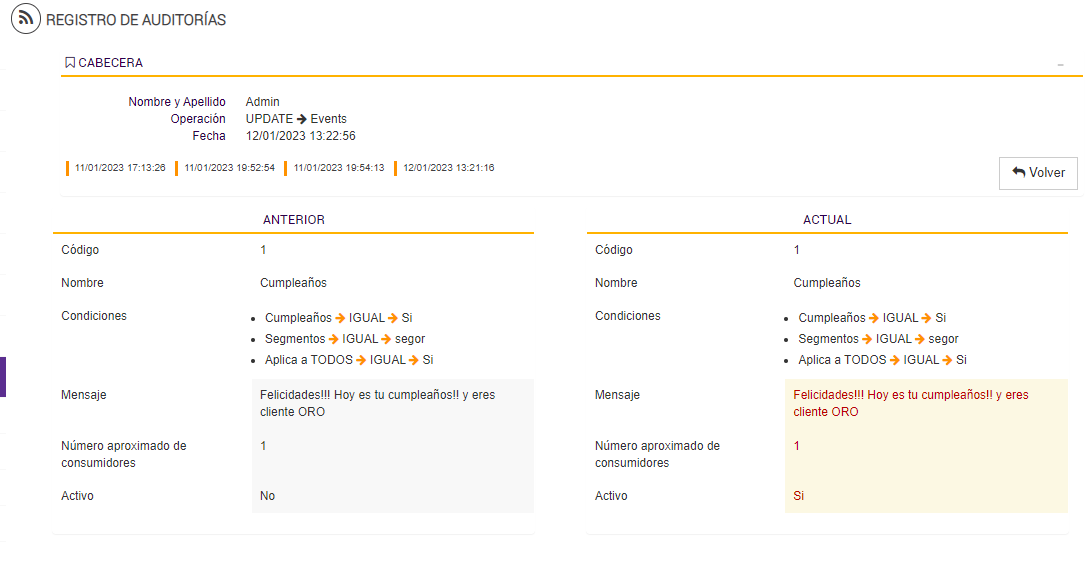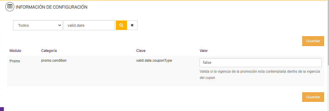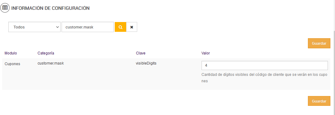 Si en Administración/ Información de Configuración, se modifica la siguiente configuración: