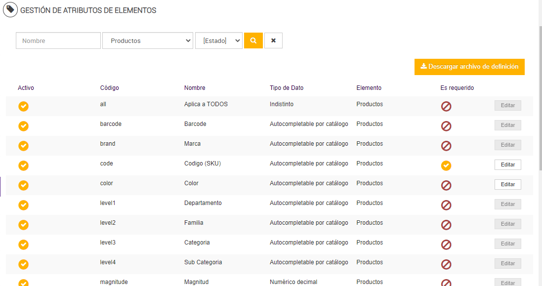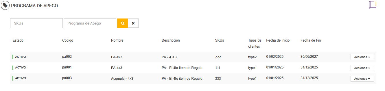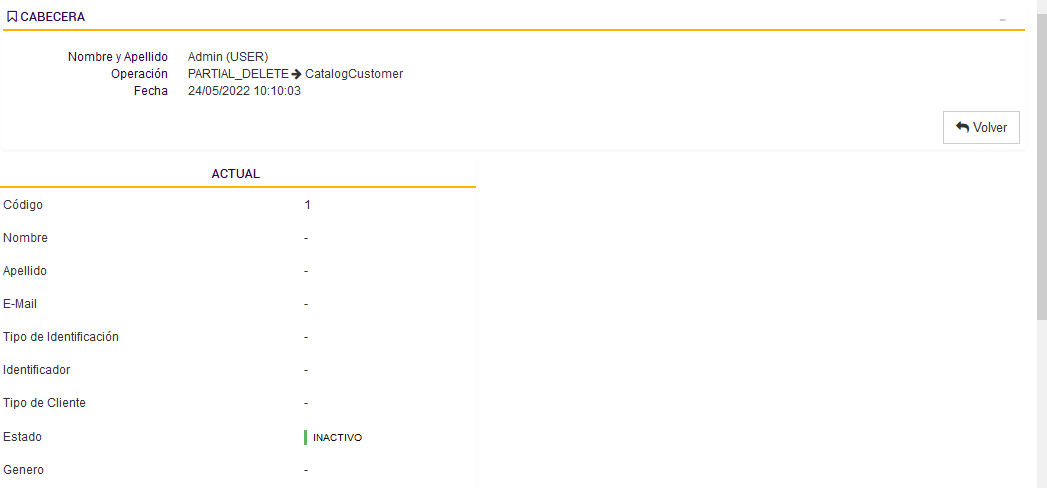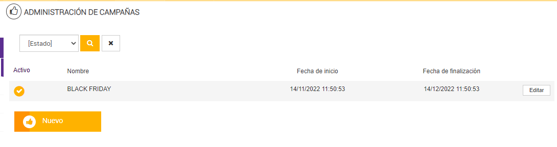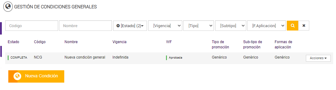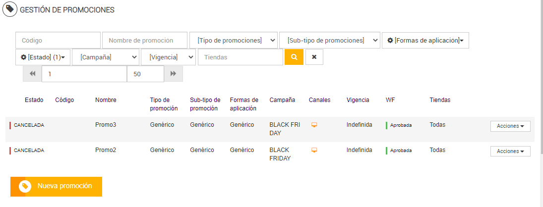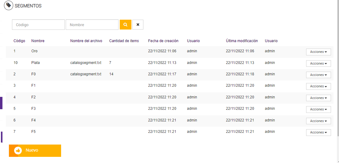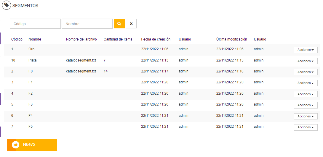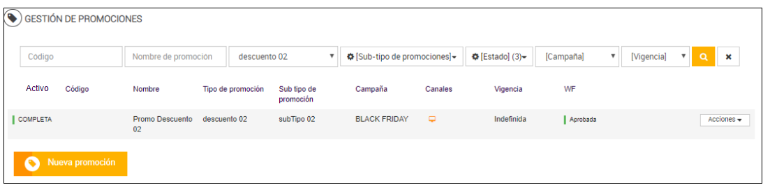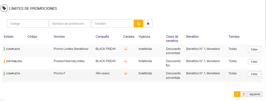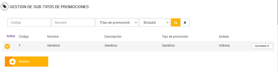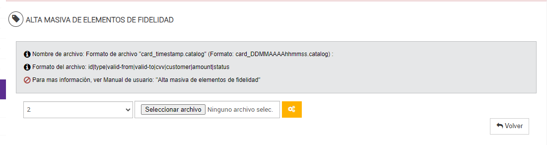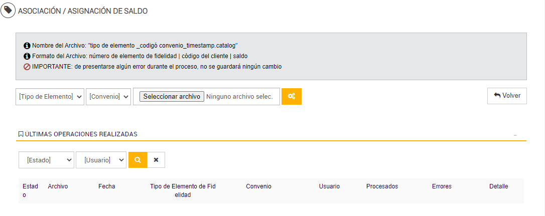 - Tipo: Indica los procesos de importación que se han ejecutado por los diferentes medios existentes: Catalogos/Rest/RabbitMQ/Importacion de Promociones Masivas vía Rest. No es una lista pre definida, dependerá de los tipos de importación realizados.