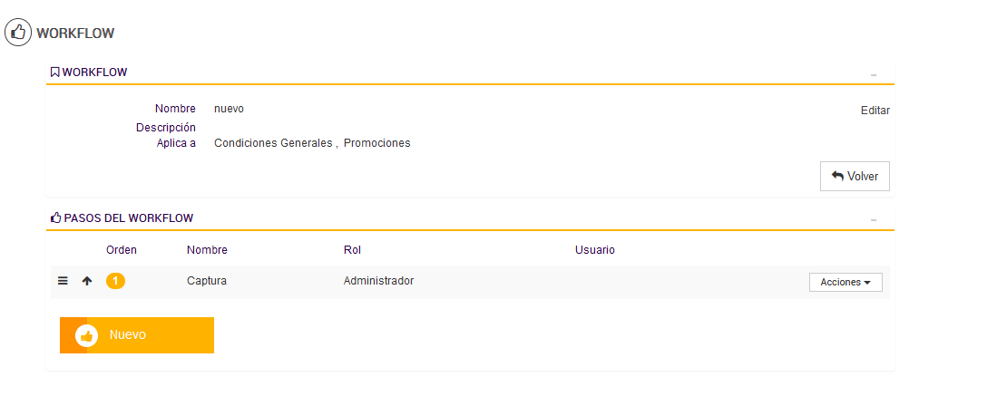En algunas vistas también se observará un link a un video explicativo. En este ejemplo se redirigirá al usuario al video que detalla la administración de workflows).