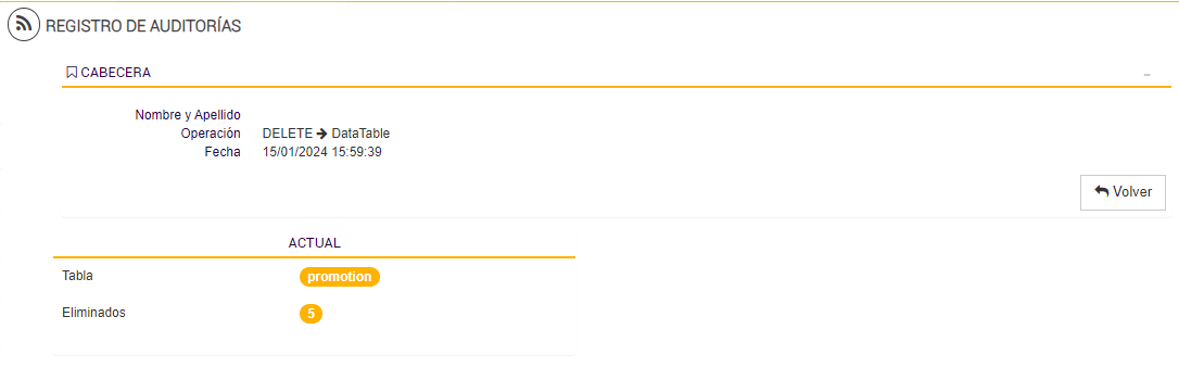 Al seleccionar el botón "Acciones" y luego "Descargar" sobre alguno de los campos mostrados, permitirá descargar localmente el log seleccionado.