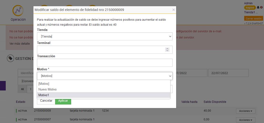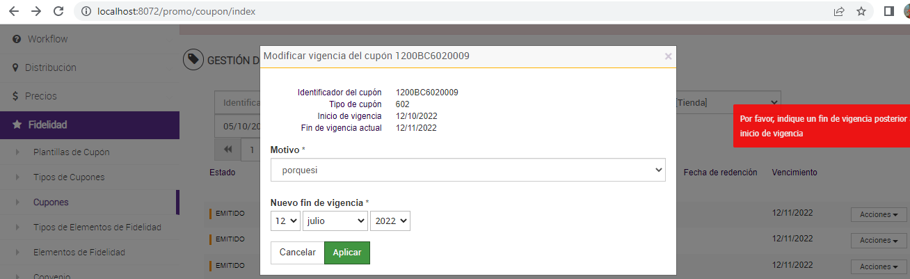 PROMO permite registrar reversos de elementos de fidelidad devenidos de devoluciones o notas de créditos realizados en el punto de venta donde se vean involucrados cupones y elementos de fidelidad.