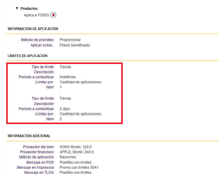 Se podrán definir reglas de convivencia y órdenes de aplicación entre promociones vigentes. Estos parámetros serán utilizados, mediante algoritmos de alta eficacia, para determinar el conjunto de promociones que participan de una determinada venta. Estas promociones serán informadas al punto de venta, quien será el encargado de aplicar las promociones informadas por PROMO en el ticket.