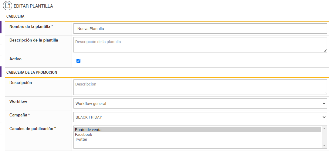 - Definir y administrar plantillas de promociones. Componente responsable: la consola de administración.