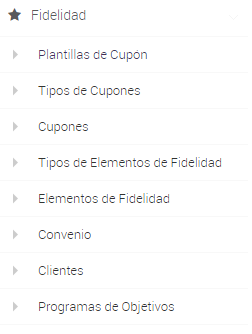 De la misma manera, si se deshabilita el acceso al módulo de Elementos de Fidelidad, se deshabilitará la opción correspondiente en la consola: