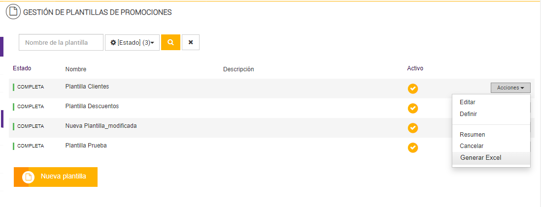 También permite el armado de plantillas de Promociones que podrán ser utilizadas para la carga masiva de promociones en la consola de Promo, ahorrando tiempo de creación y mayor confianza en la coherencia de la promoción.